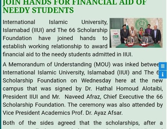 IIUI, 66 Scholarship Foundation Join Hands For Financial Aid Of Needy Students