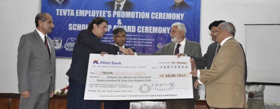The 66 Scholarship Foundation has granted the first scholarship in Ghulam Mohammad Mahar Medical College, Sukhur.